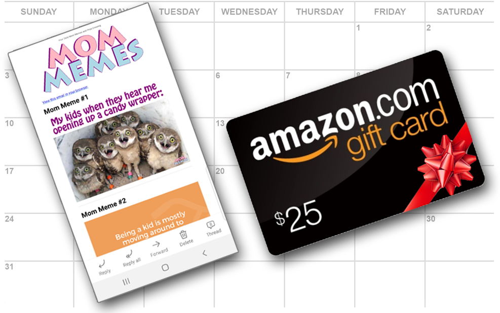 Get a Chance to Win a $25 Amazon Gift Card EVERY DAY & Enjoy Our Hilarious Mom Memes in Your Email.
